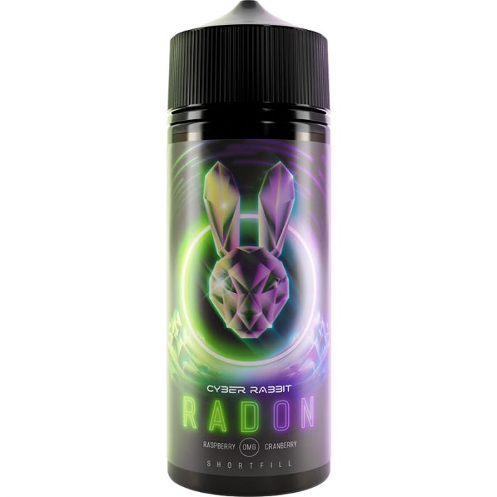 Radon 100ml shortfill e-liquid by Cyber Rabbit blends berries and ice for a cool and sweet vape. The juicy taste of raspberry and cranberry brings with it a tangy note that pairs well with the chilly flavour on exhale.