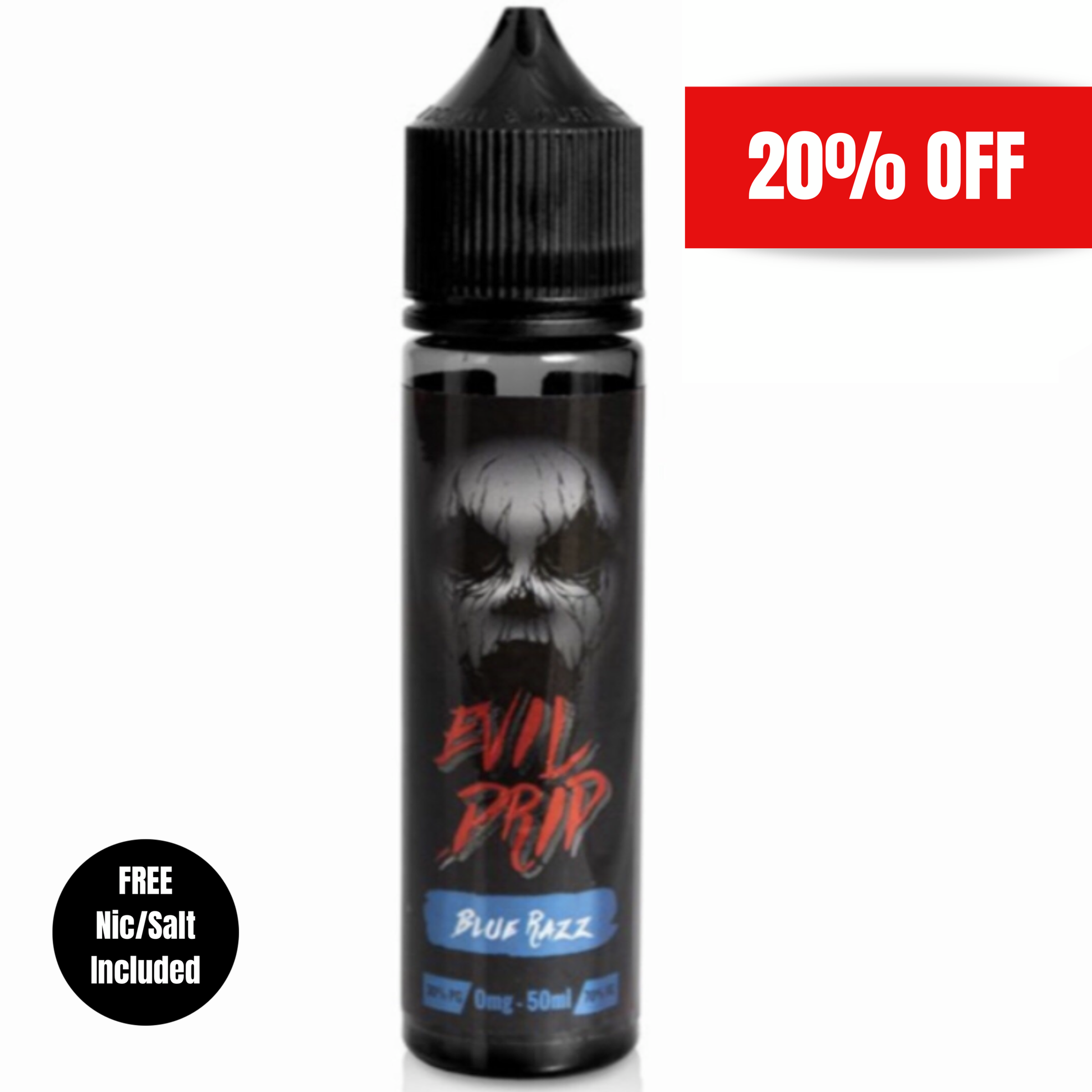 Blue Razz E-Liquid by Evil Drip 50ml Shortfill is a burst of juicy, sweet blueberries and raspberries on the inhale followed by a cooling ice on the exhale, creating a tasty blue raspberry ice vape