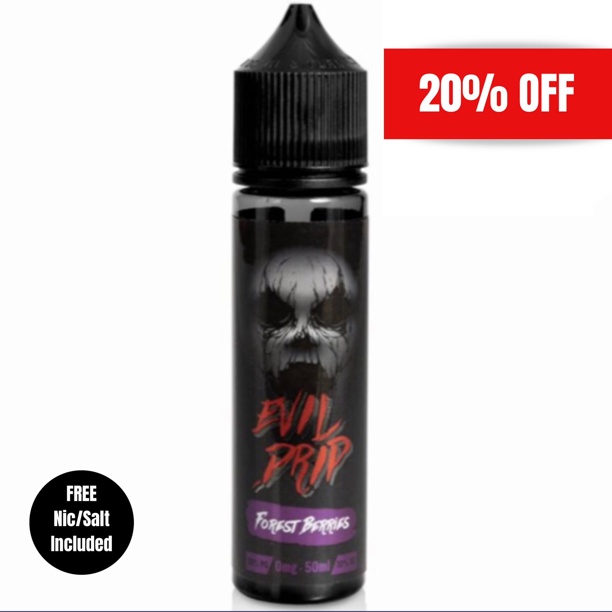 Forest Berries E-Liquid by Evil Drip 50ml Shortfill is a sweet berry fruit blend, a combination of mixed berries with sweet notes on both the inhale and exhale creates an easy all day vape for any berry lover