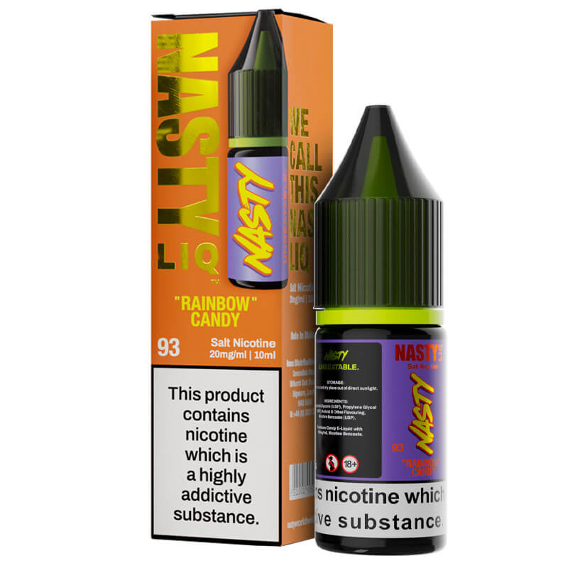 Rainbow Candy nic salt e-liquid by Nastyliq is a punchy fusion of fruit and candy that’s ideal for vapers with a sweet tooth. A tangy medley of tropical fruit is given a sugary finish by the taste of classic candy.
