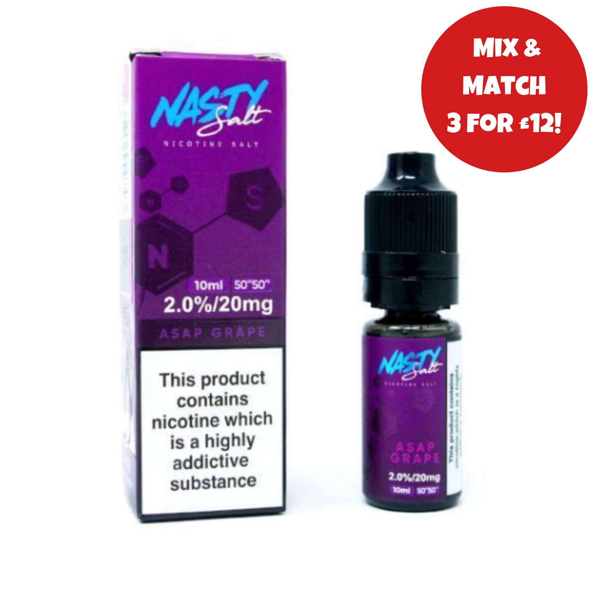 Asap Grape eLiquid by Nasty Salt is a blend of Black Grapes mixed with Berries and finished of with a low mint to give it a subtle iced cool finish