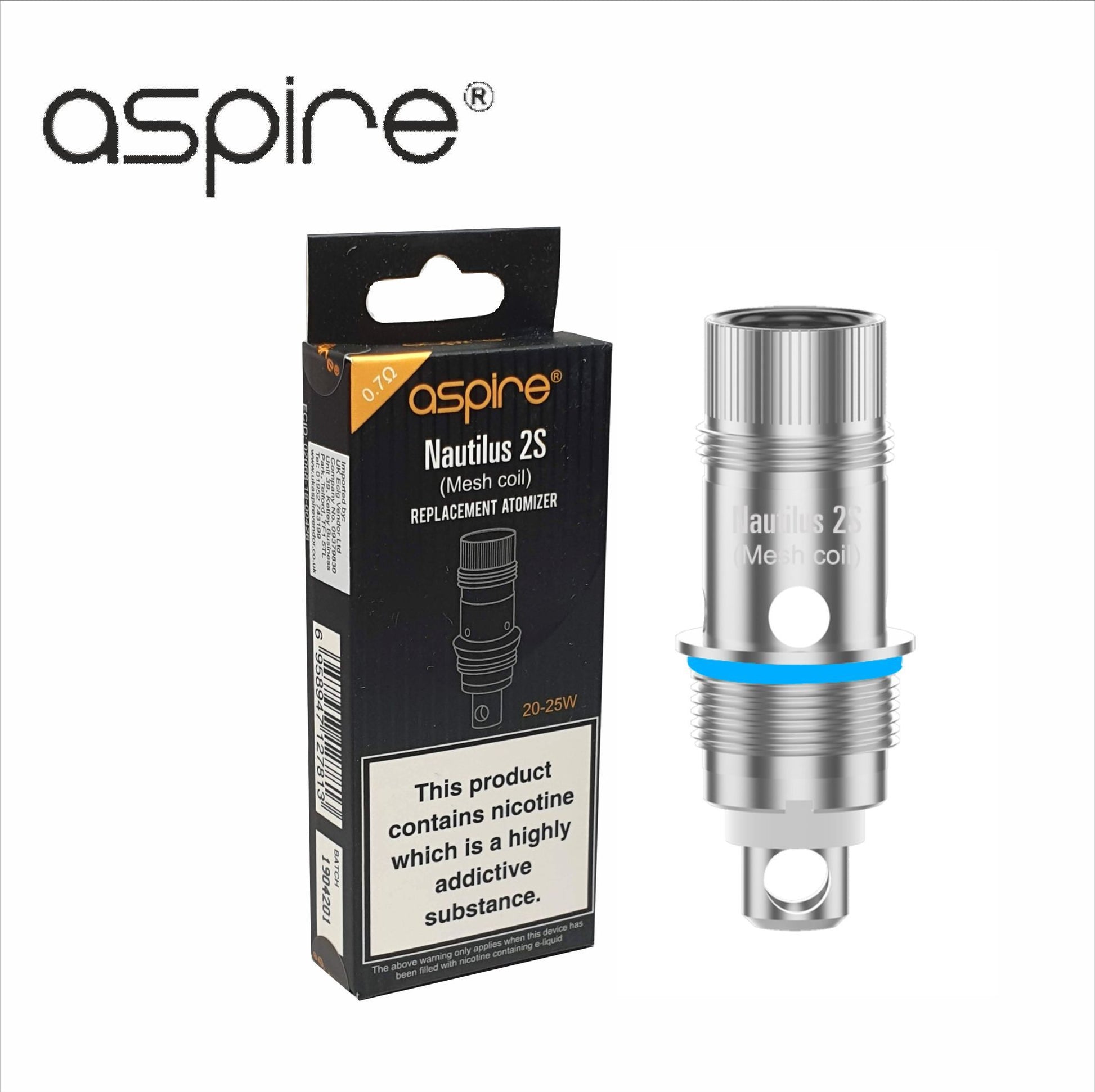 Genuine replacement Aspire Nautilus 2S mesh coil 0.7Ω Ohm.