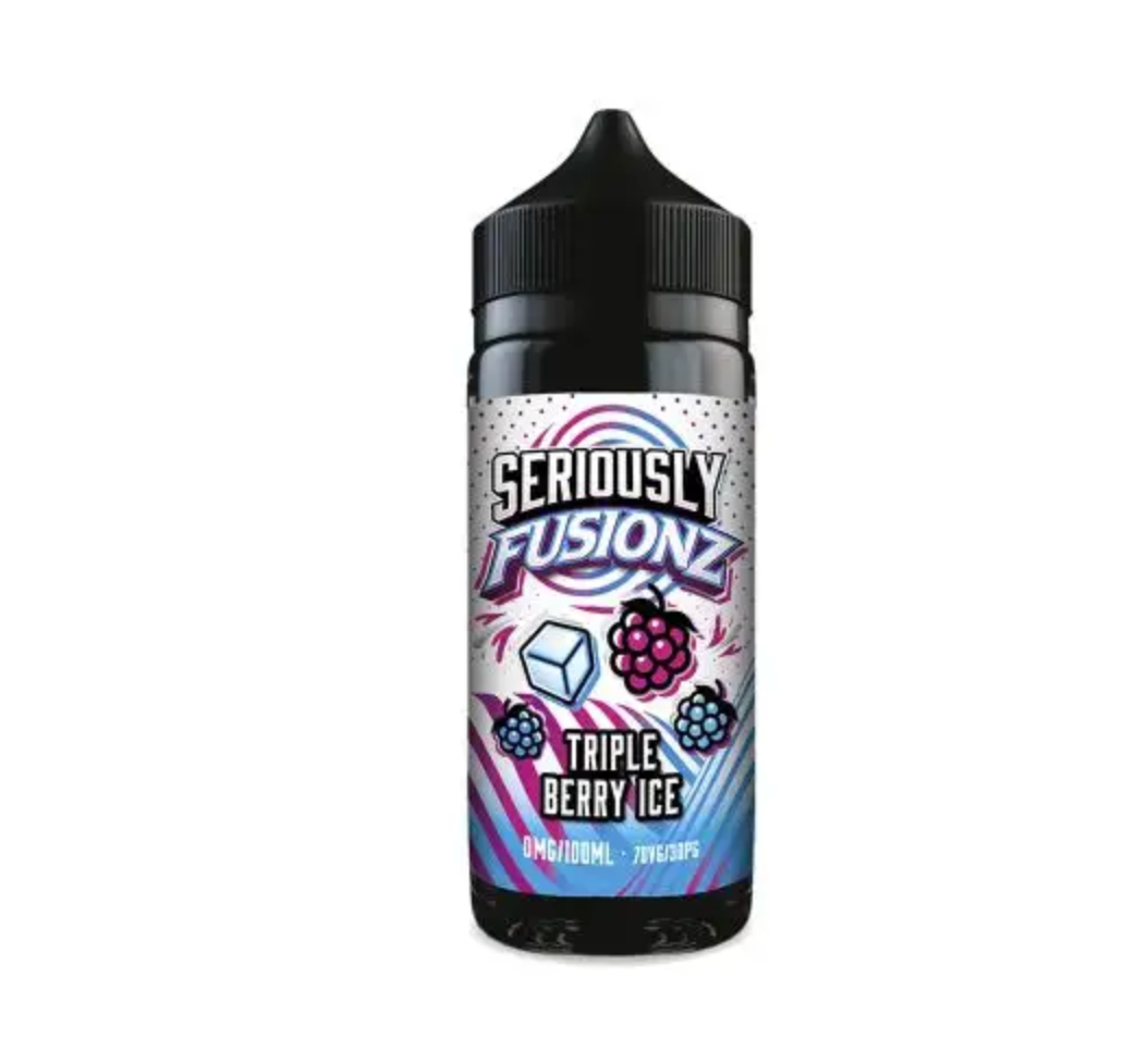 Triple Berry Ice - Achieve tantalizing bliss with Doozy Seriously Fusionz. This 100ml shortfill blend of sweet raspberry and blueberry is finished off with a refreshing hint of ice, perfect for conquering a sweet tooth craving. Experience a heavenly fusion of fruity and icy flavours!