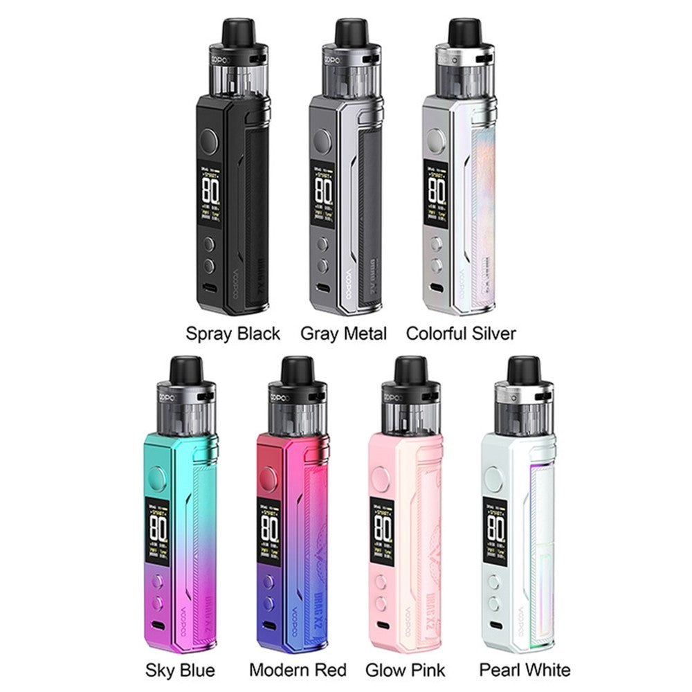 The Voopoo Drag X2 pod vape kit is an easy-to-use option that’s full of features. Thanks to a replaceable 18650 battery (sold separately), this kit can deliver a 5-80W power range and support MTL (Mouth To Lung), RDTL (Restricted Direct To Lung) and DTL (Direct To Lung) vaping. In the box, you’ll find a PNP X Cartridge and two different PNP X coils, so you can start vaping right away.