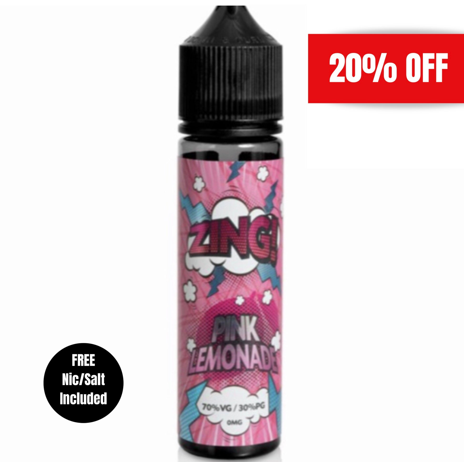 Pink Lemonade E-liquid by Zing! 50ml is a the a classic soda blend of zesty lemonade mixed with sweet raspberries